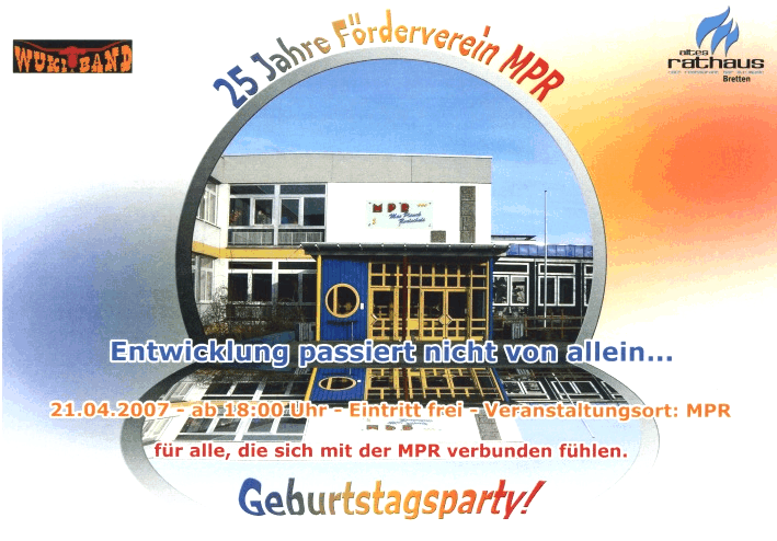 Das im Sommer 2000 veranstaltete Schulfestes sowie das Open Air Konzert der MPR-Schulband wurden vom Verein unterstützt und begleitet.